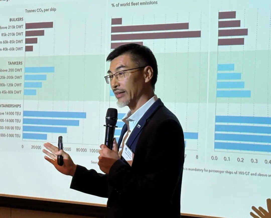 挪威船级社技术支持高玮先生介绍了在航运业温室气体排放全生命周期评估下的船舶设计发展趋势,特别是风力辅助推动系统和船上碳捕捉系统。他指出:随着绿色合规要求不断加强,采用新能源技术的船舶数量正在快速增长,这要求船舶将有助于降低船舶能耗和排放的脱碳解决方案融入设计环节。在传统燃料船型基础上,船舶设计要兼顾新型燃料、前沿技术、碳排放后处理(碳捕捉与存储)以及运营技术和效能的提高。让我们携手推进脱碳进程。