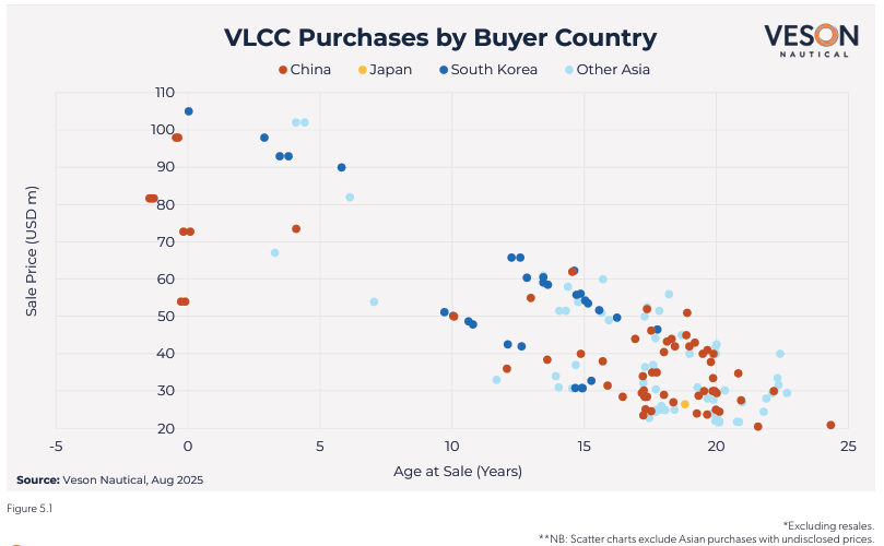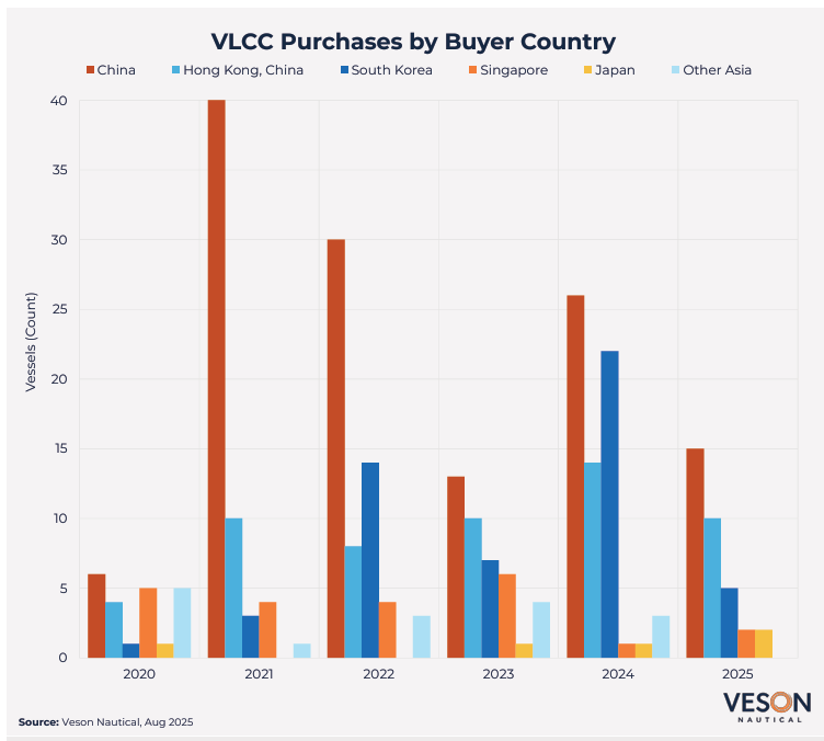 ● 韩国:偏好中等船龄(10–15年)的VLCC和年轻的MR2,强调品质与合规,典型的“稳健型逆周期”参与者。