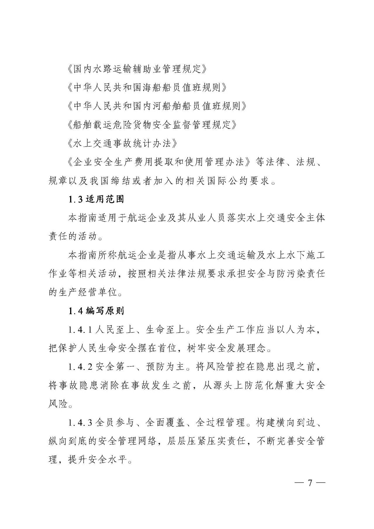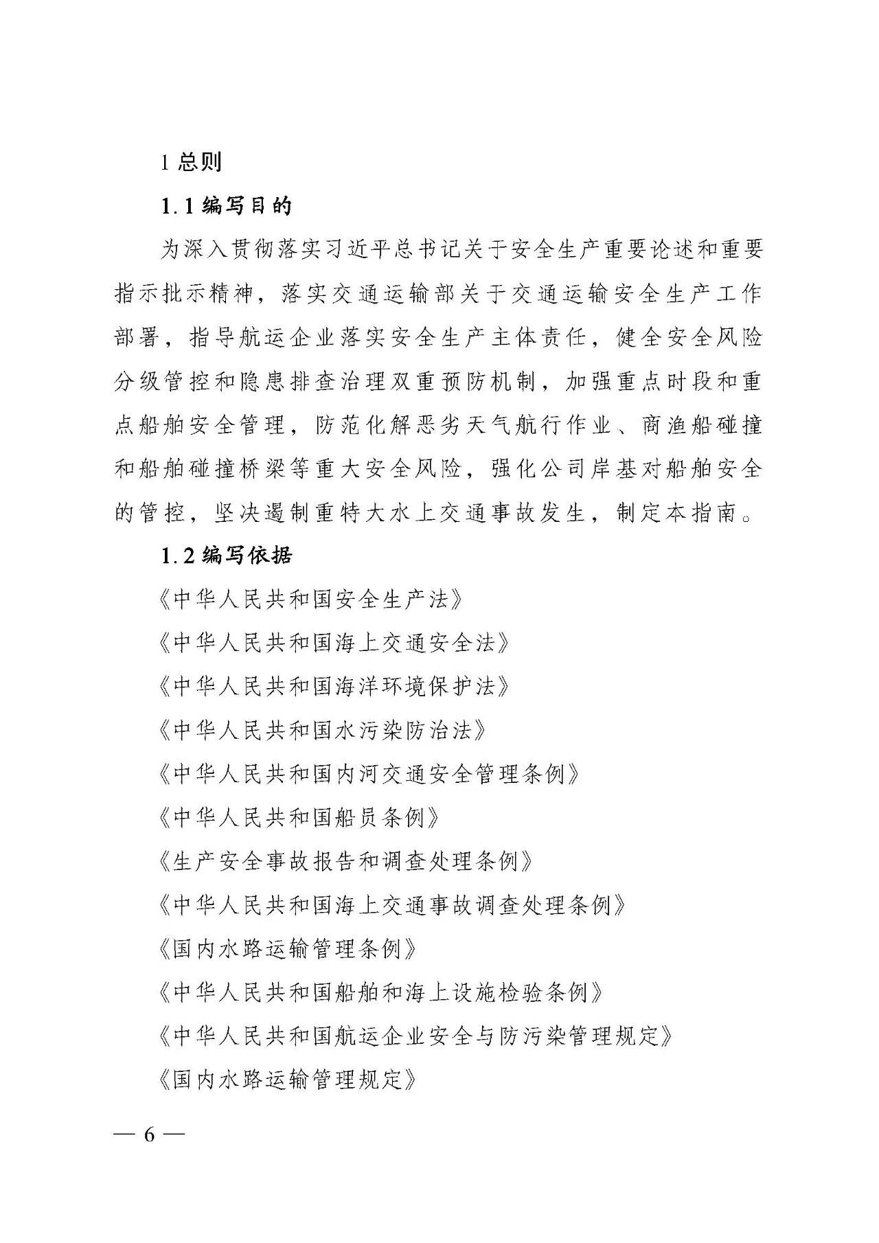 为深入贯彻落实习近平总书记关于安全生产重要论述和重要指示批示精神,落实交通运输部关于交通运输安全生产工作部署,指导航运企业依法落实安全生产主体责任,建立健全安全风险分级管控和隐患排查治理双重预防机制,加强重点时段和重点船舶安全管理,强化公司岸基对船舶安全的管控,有效防范化解重大安全风险,我局制定了《航运企业落实安全生产主体责任指南(1.0版)》,现予发布。