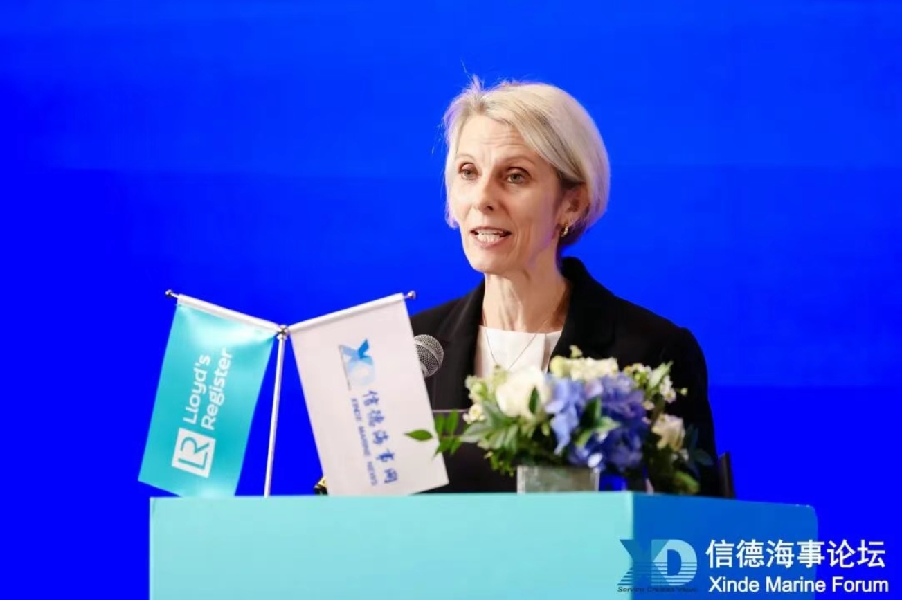 劳氏船级社首席市场官 Philippa Charlton 在演讲中指出,航运业正处于数字化、绿色转型与新燃料应用交织的结构性变革期,未来十年将有逾 45 万名船员需要接受额外培训,2035 年前更将增至 80 万,行业迫切需要建立全球统一的能力与培训框架。她介绍了新燃料培训体系,强调脱碳和技术升级最终取决于海员的能力、心理健康与数字素养。她同时分享了劳氏“OneOcean”数字平台如何连接培训、技术管理、合规与运营优化,帮助企业在复杂环境中实现更安全高效的管理,并以“航运的未来不是船,而是人”作为核心总结。