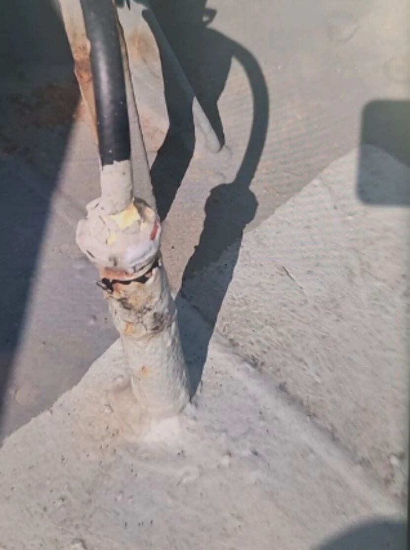 前往卫生区和舵机房时,看到蘑菇通风口的电气接线盒有锈蚀穿孔现象;