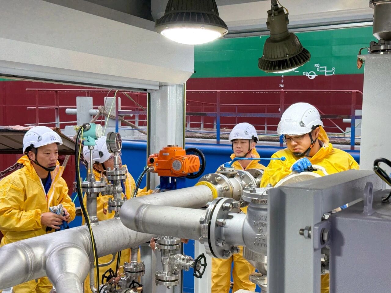 作业中,团队严格遵循国际标准,对管线连接、气密性检测等关键环节全流程精细化管控,同步部署监测与应急装备,确保作业安全精准高效完成。这一成果不仅展现了中国船燃绿色燃料加注的硬核实力,更践行了“五保”服务承诺,积累了可复制推广的经验,为构建标准化绿色供应体系提供了实践样本。