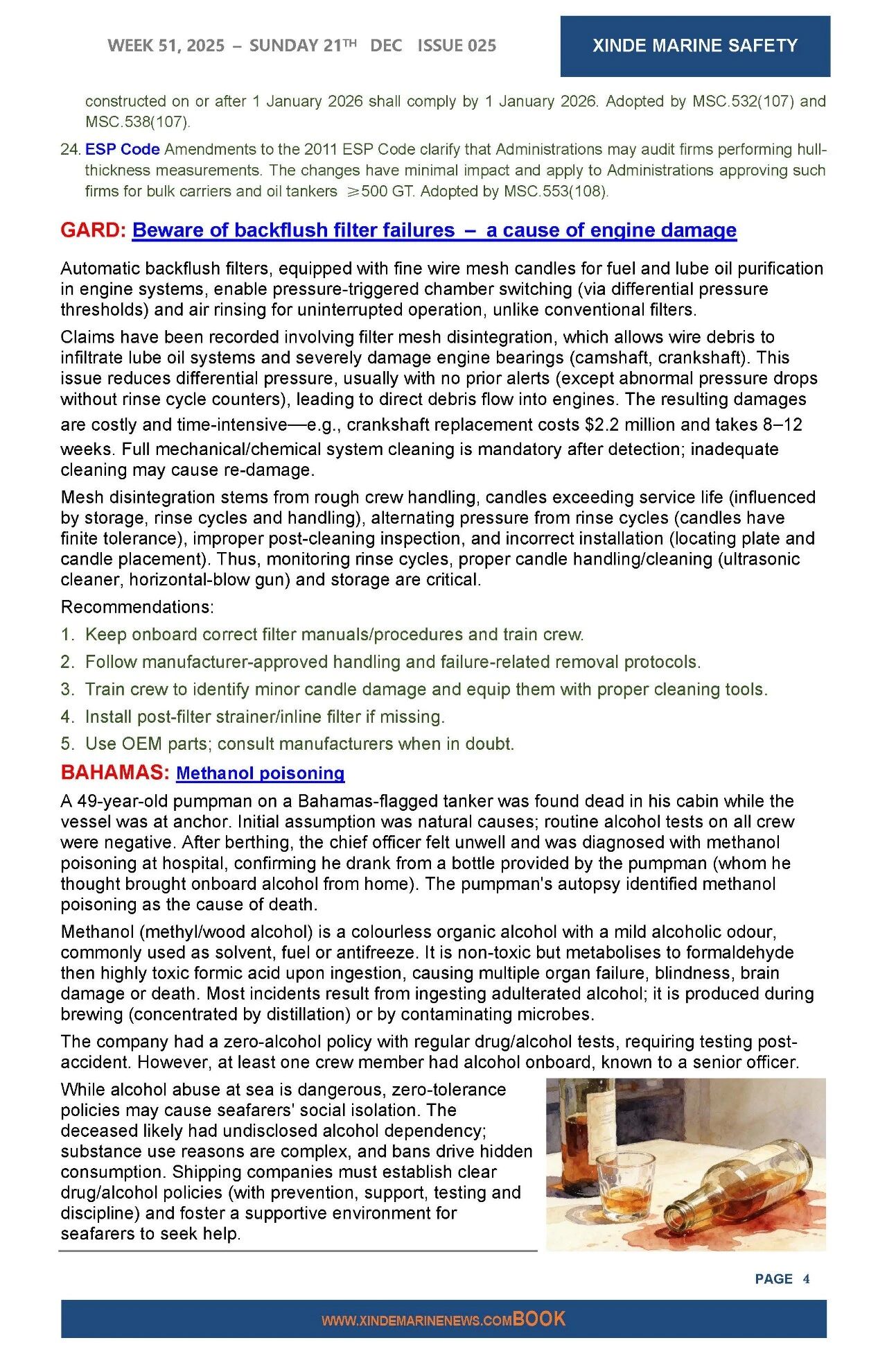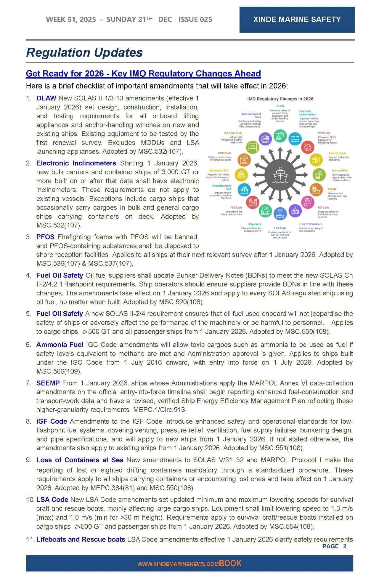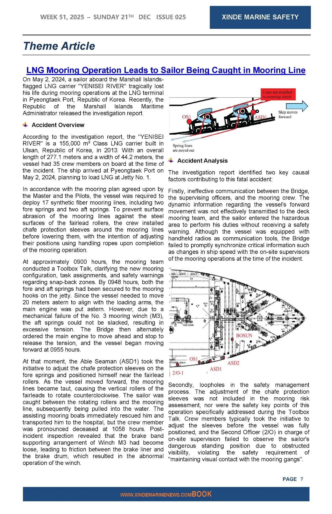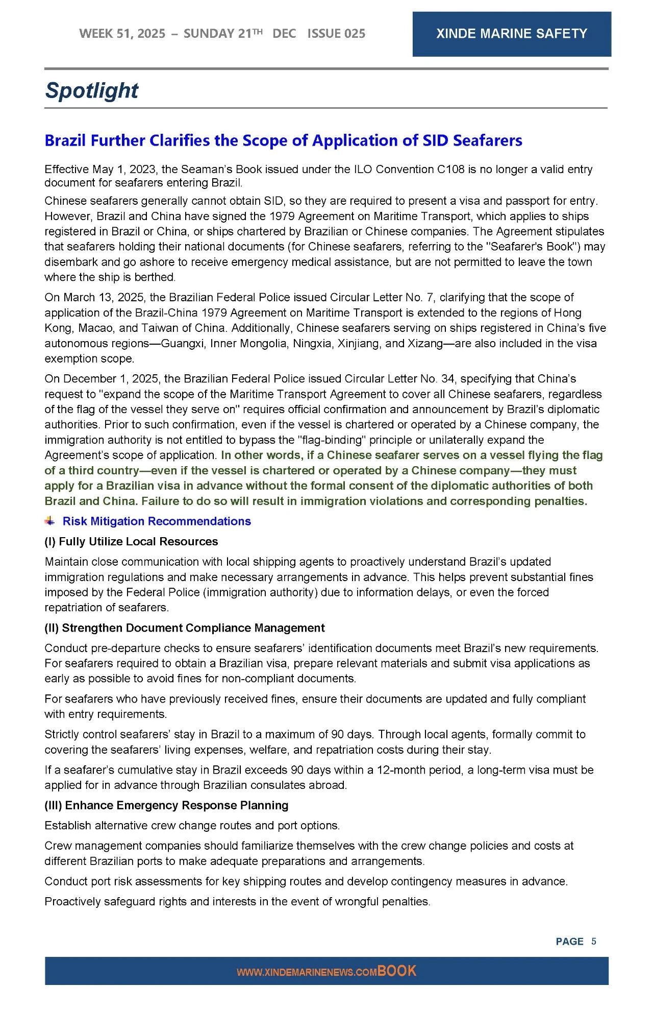 信德海事一直把实现海上更安全当作我们的愿景之一。2020年8月22日正式推出《信德海事安全周报》,2021年1月,《信德海事安全月报》上线;2021年2月,《信德海事安全指南》上线;2025年7月,《MARINE SAFETY BULLETIN》上线,实现中英双语发布。如有船公司需订阅以上产品,请发送邮件:safety@xindemarine.com,或联系主编:18641784019(微信)。