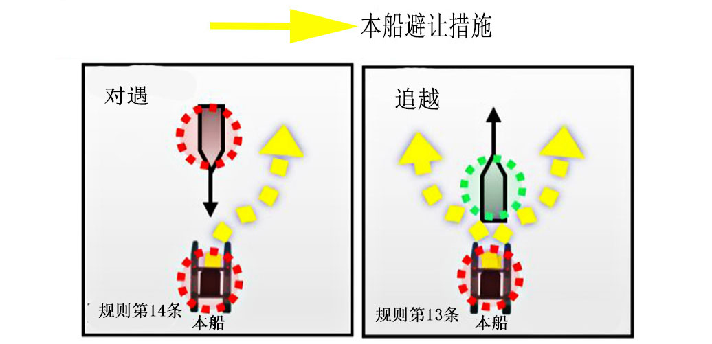 2.互见中,当两艘机动船在相反的或接近相反的航向上相遇致有构成碰撞危险时,就是对遇局面啦,各应向右转向,从而各从他船的左舷驶过。