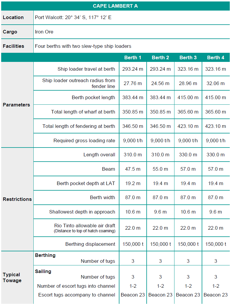 Cape Lambert A 码头相关信息