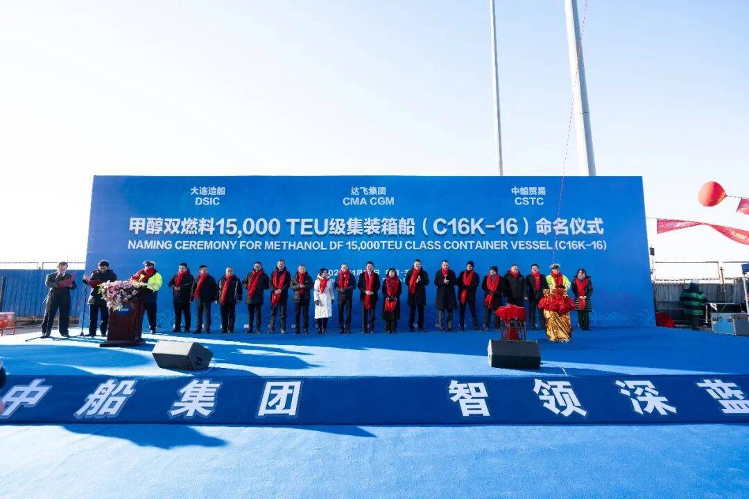 值得关注的是,该批订单签署于中法建交60周年之际,中国船舶集团与达飞集团在北京正式签订合作协议,协议涵盖2型16艘大型集装箱船,总金额超过210亿元人民币,并创下“中国造船业一次性签约集装箱船最大金额”的纪录。其中,6艘甲醇双燃料15000TEU集装箱船由大船天津承建,本次交付即为该系列的开篇之作。