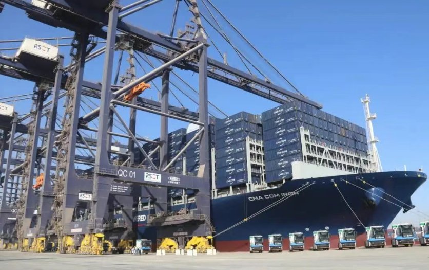 Its green configuration is also emphasized: the terminal deploys large-scale all-electric cargo-handling equipment, including electric trucks and electric reach stackers, to reduce its carbon footprint and respond to the global sustainability trend.