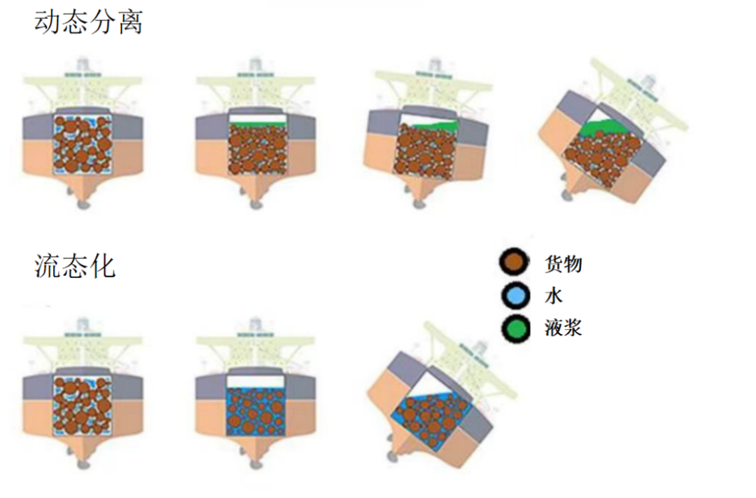 而红土镍矿的含水量最高可达40%以上,在船舶航行的摇摆、振动中,极易发生流态化,形成“水-泥浆-货”的分层结构。加之镍矿渗透性差,表面析出的水分无法通过舱底排水口排出,形成自由液面,即便船舶设有分隔舱,也难以控制货物流动。