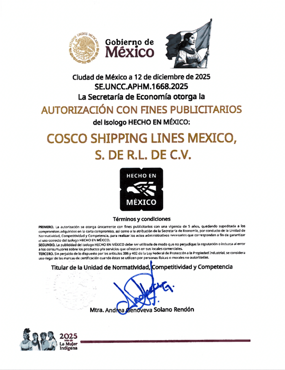 在数字贸易领域,公司成功推动区块链电子提单的推广应用,助力拉美市场贸易流程的数字化升级。此外,中远海控旗下墨西哥集运近日获得墨西哥联邦政府经济部授予的“Hecho en México”(墨西哥制造)官方认证,成为此次认证活动中唯一获此认可的船公司,体现了公司在当地合规经营、专业服务能力和责任担当方面的持续投入。