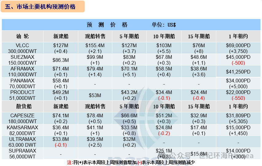 新造船市场,总部位于新加坡的WEALTH HOLDINGS进军多用途船舶领域,在江苏海通下单4+2+2艘17,400载重吨多用途新造船,这批新造船锁定同丹麦运营商 DS NORDEN的租约。希腊船东DYNACOM TANKERS MANAGEMENT在沪东中华下单至多12艘300,000载重吨VLCC新造船,单船造价超1.2亿美元,预计将于2028年交付。中远海运能源在广船国际下单2艘50,000载重吨MR型油轮新造船,单船造价5,200万美元,预计将于2028年交付。希腊VENERGY MARITIME宣布执行在韩国K SHIPBUILDING多建造2艘50,000载重吨MR型油轮的选择权,单船造价在5,000万美元,将于2027年交付。中谷物流在恒力重工下单4+2艘6,000TEU集装箱新造船,预计将于2028年开始相继交付。长荣海运通过其子公司EVERGREEN MARINE ASIA在中船黄埔文冲下单16艘约3,100TEU支线集装箱船,同时在扬子江船业下单7艘5,900TEU超巴拿马型集装箱新造船,新船预计将于2029年交付。地中海航运在扬州国裕下单2+2艘5,000TEU传统燃料集装箱新造船,预计将于2028年下半年至2029年年初交付。海丰国际在黄海造船下单2艘2,700TEU集装箱新造船,单船造价在3,825万美元,预计将于2029年1-3月交付。民生金融租赁在江南船厂下单2艘175,000立方米液化天然气运输新造船,新船预计将于2028年至2029年交付。这批船待交付后将由位于英国的能源巨头壳牌租用,民生金融租赁公司作为船东,山东海运将负责商业管理,而壳牌国际航运将负责技术运营。安哥拉SONANGOL在韩国现代三湖船厂下单1艘174,000立方米液化天然气运输新造船,该船造价在2.45亿美元,将于2028年交付。
