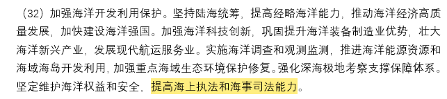 海事安全保障: 为保障运输通道安全,《建议》特别强调“坚定维护海洋权益和安全”,并提出要“提高海上执法和海事司法能力”。
