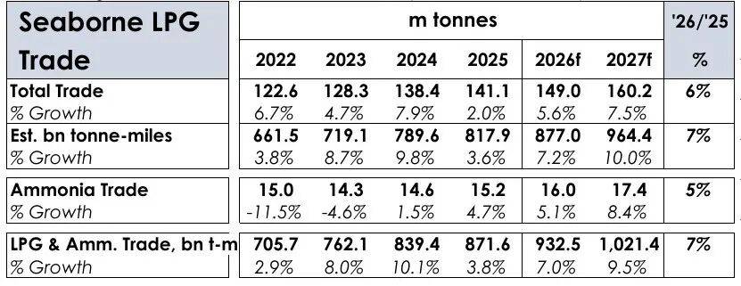总体来说,克拉克森认为,未来一年,2026年有望继续成为LPG运输市场的积极年份。