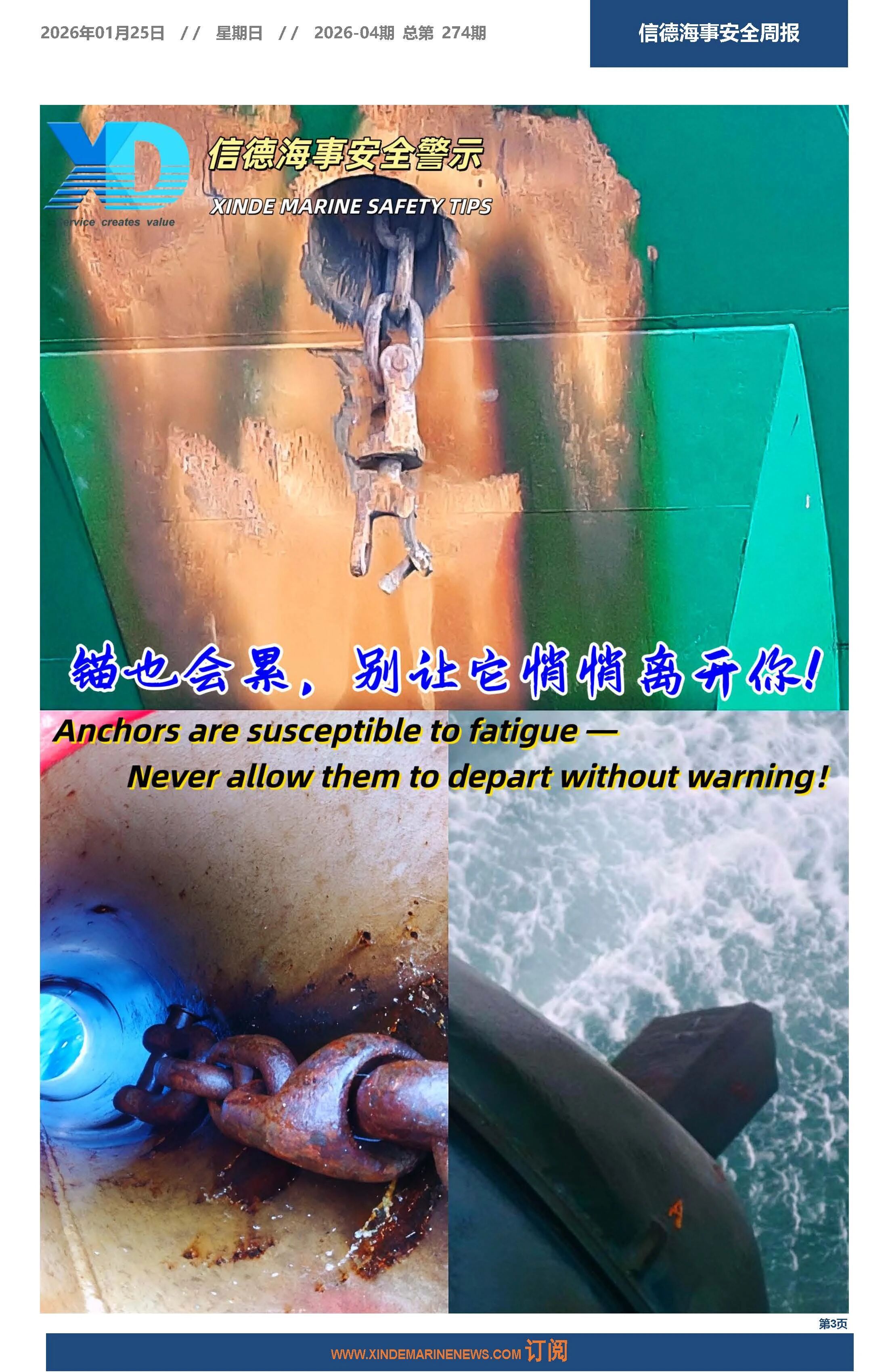 信德海事一直把实现海上更安全当作我们的愿景之一。2020年8月22日正式推出《信德海事安全周报》,2021年1月,《信德海事安全月报》上线;2021年2月,《信德海事安全指南》上线;2025年7月,《MARINE SAFETY BULLETIN》上线,实现中英双语发布。如有船公司需订阅以上产品,请发送邮件:safety@xindemarine.com,或联系主编:18641784019(微信)