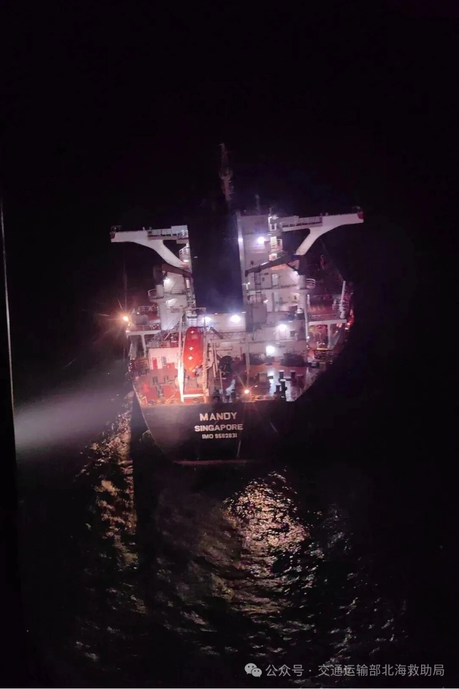 山东海事局2月18日发布情况通报称,山东省海上搜救中心获悉:2026年2月17日19时40分许,威海市海上搜救中心接报,新加坡籍散货船“MANDY”轮在概位36°45′N,123°05′E处机舱失火,造成2名外籍船员失联、1名外籍船员受伤。