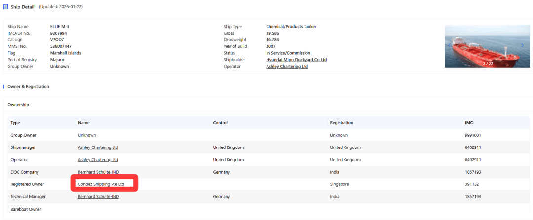 据信德海事网最新了解,Condez 在 2026年1月16日以约 1500万美元购入一艘 46,800载重吨、2007年建造的 MR2级化学品/成品油船 Ellie M II。该船此前由英国相关机构运营,出售后的具体就业安排尚未对外明确。