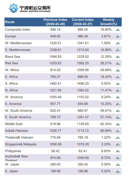 Ningbo Containerized Freight Index Weekly Commentary 2026 2.21-2.27 |