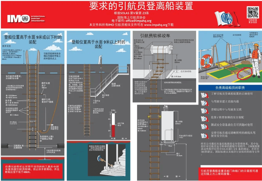 IMO航行、通信和搜救分委会第11次会议Communications and Search and Rescue Eleventh Session(NCSR11)于2024年6月4日至6月13日在英国伦敦召开,同意起草对 SOLAS 公约第 V/23 条及相关规则的修订草案(Resolution A.1045(27)),以提高引航员接送的安全性。该分会还同意了海上安全委员会(MSC以下简称海安会) 关于引航员登离船装置性能标准的决议草案,同时邀请国际海事引航员协会International Maritime Pilots Association (IMPA) 对有关决议草案进行修改,以解决MSC.1/Circ.1428 草案修订未决问题,并提交 MSC 109 批准,随后由 MSC 110 通过。