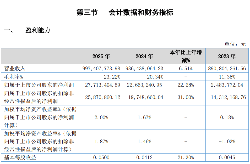 如果再看季度节奏,这家公司2025年的盈利修复并不是全年均匀发生,而是下半年明显发力。公司一、二季度归母净利润分别为-1542.91万元和-917.77万元,三、四季度则转为2481.19万元和2750.83万元;扣非后净利润在第四季度更达到5450.40万元。