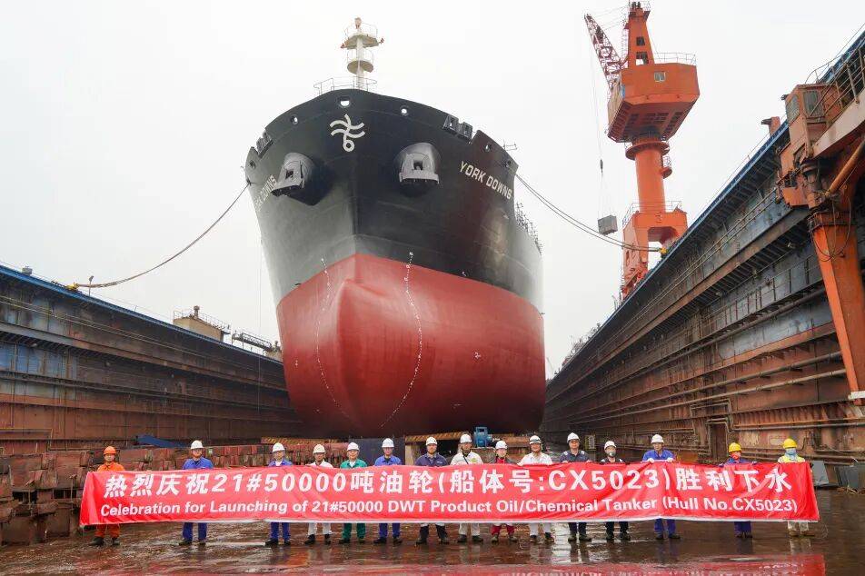 同日,中船澄西为希腊船东PRODIGY公司建造的21号50000吨MR油化船圆满完成坞内各项工程,顺利出坞下水,正式进入水下调试阶段。