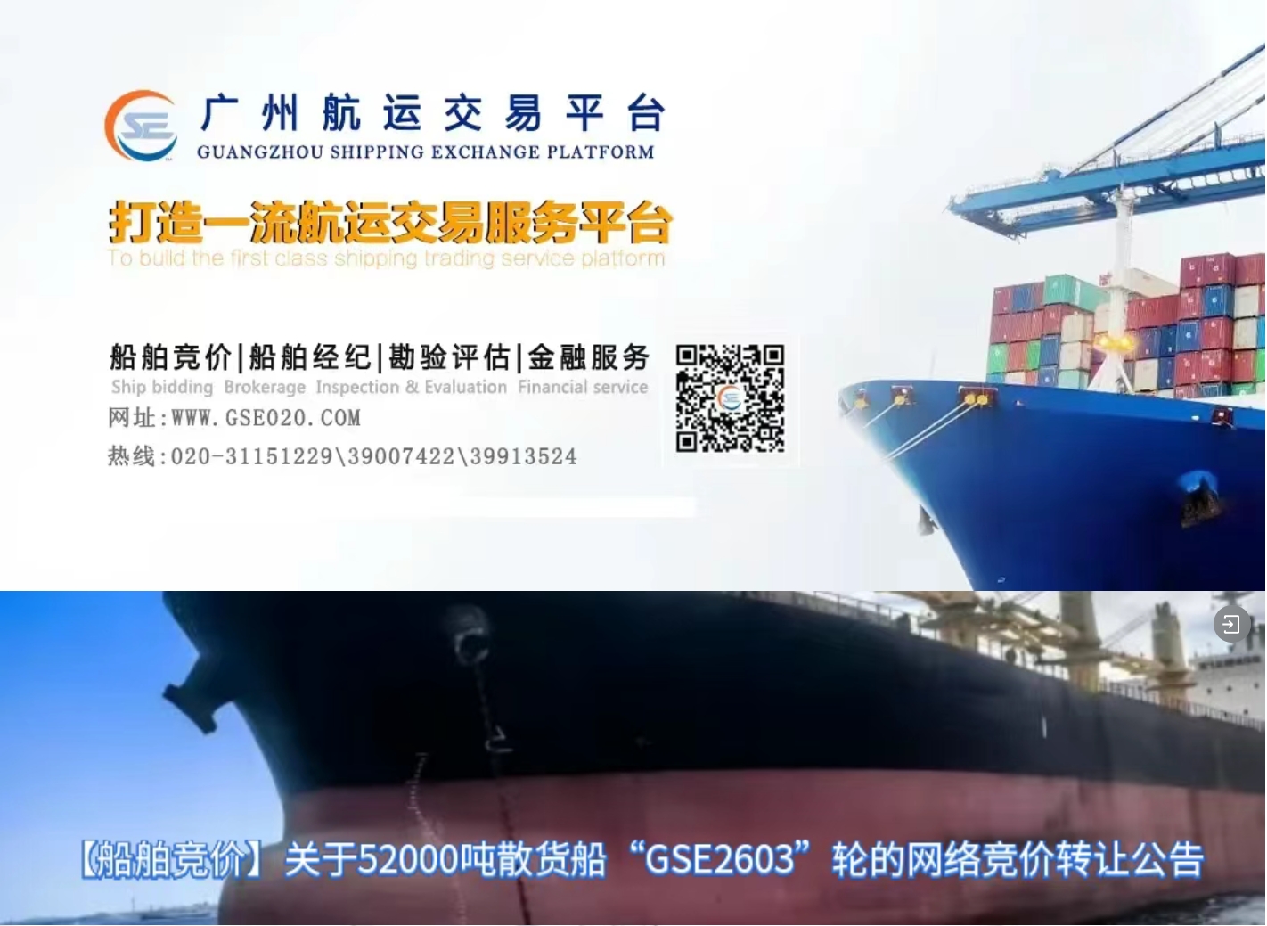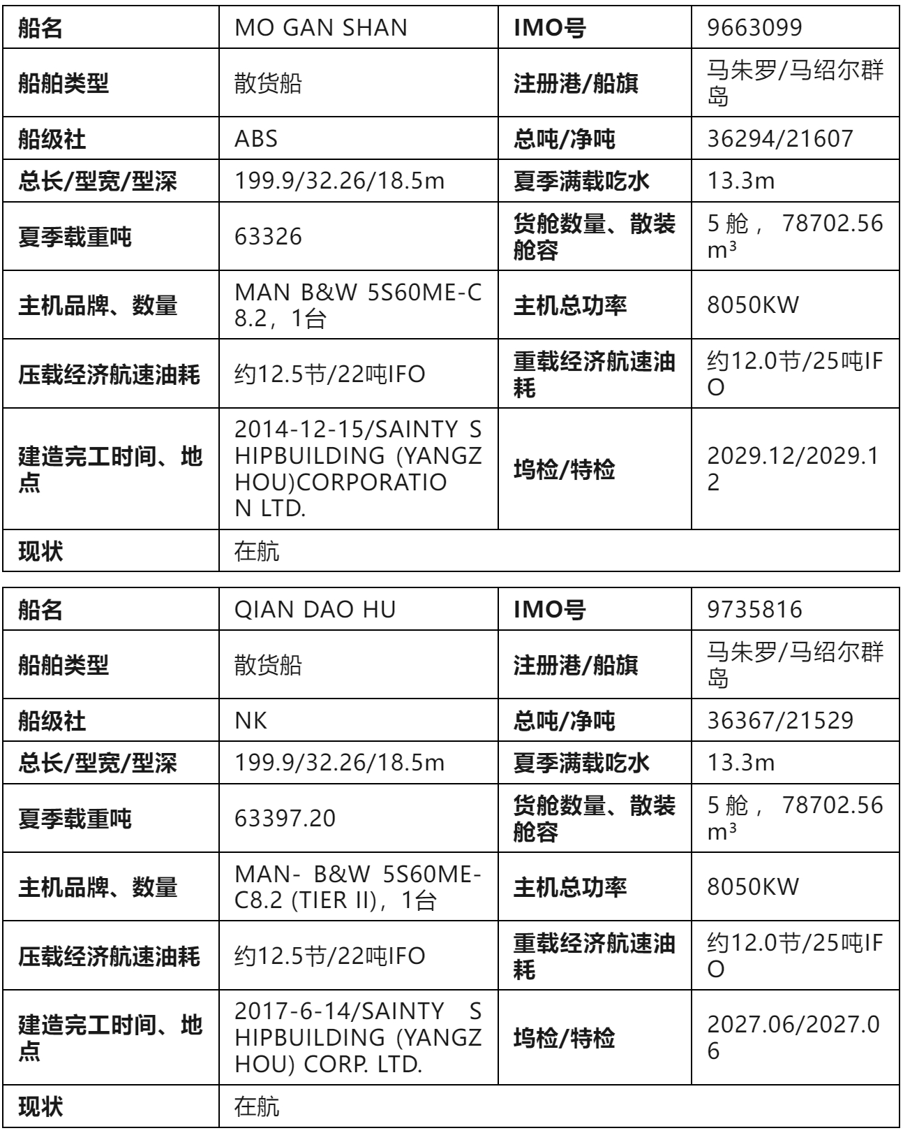 标的1:“MO GAN SHAN”、“QIAN DAO HU”轮2艘船整体打包为一个标的物;