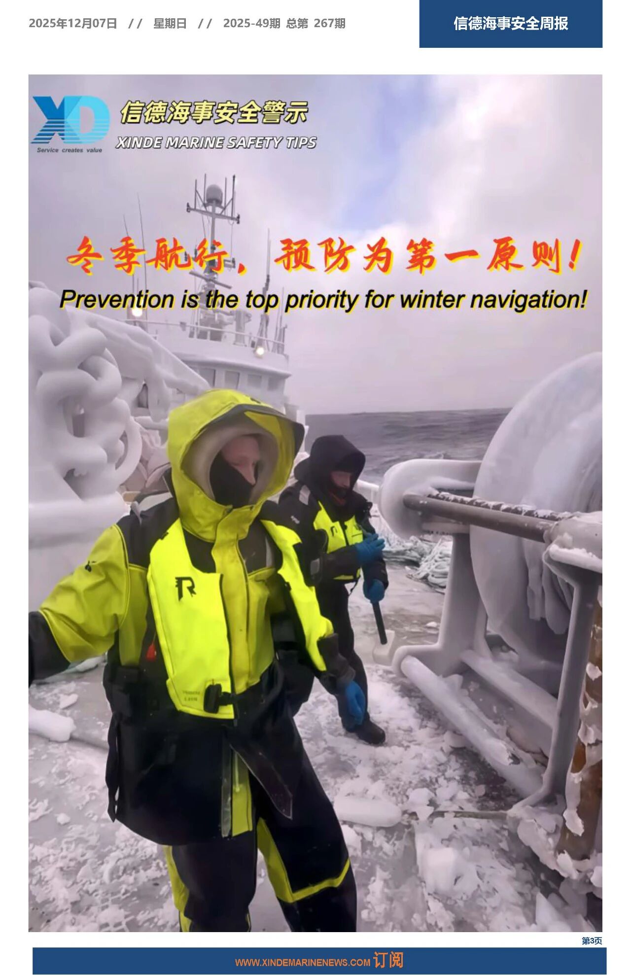 信德海事一直把实现海上更安全当作我们的愿景之一。2020年8月22日正式推出《信德海事安全周报》,2021年1月,《信德海事安全月报》上线;2021年2月,《信德海事安全指南》上线;2025年7月,《MARINE SAFETY BULLETIN》上线,实现中英双语发布。如有船公司需订阅以上产品,请发送邮件:safety@xindemarine.com,或联系主编:18641784019(微信)。