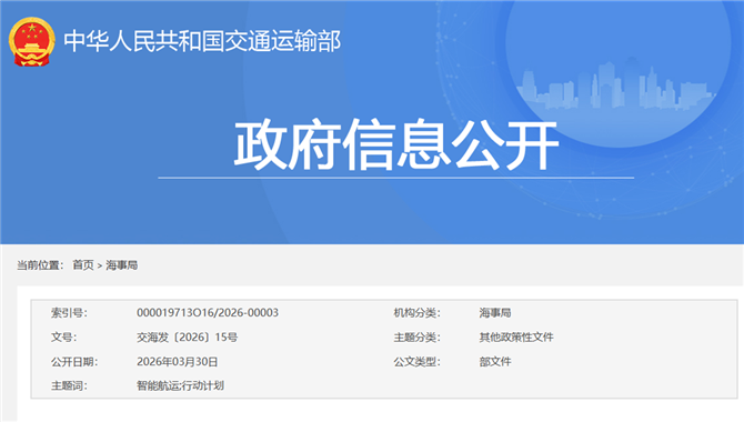 2026-03-30 17:03:30 来源:世界海运 韩佳霖 余沐珍