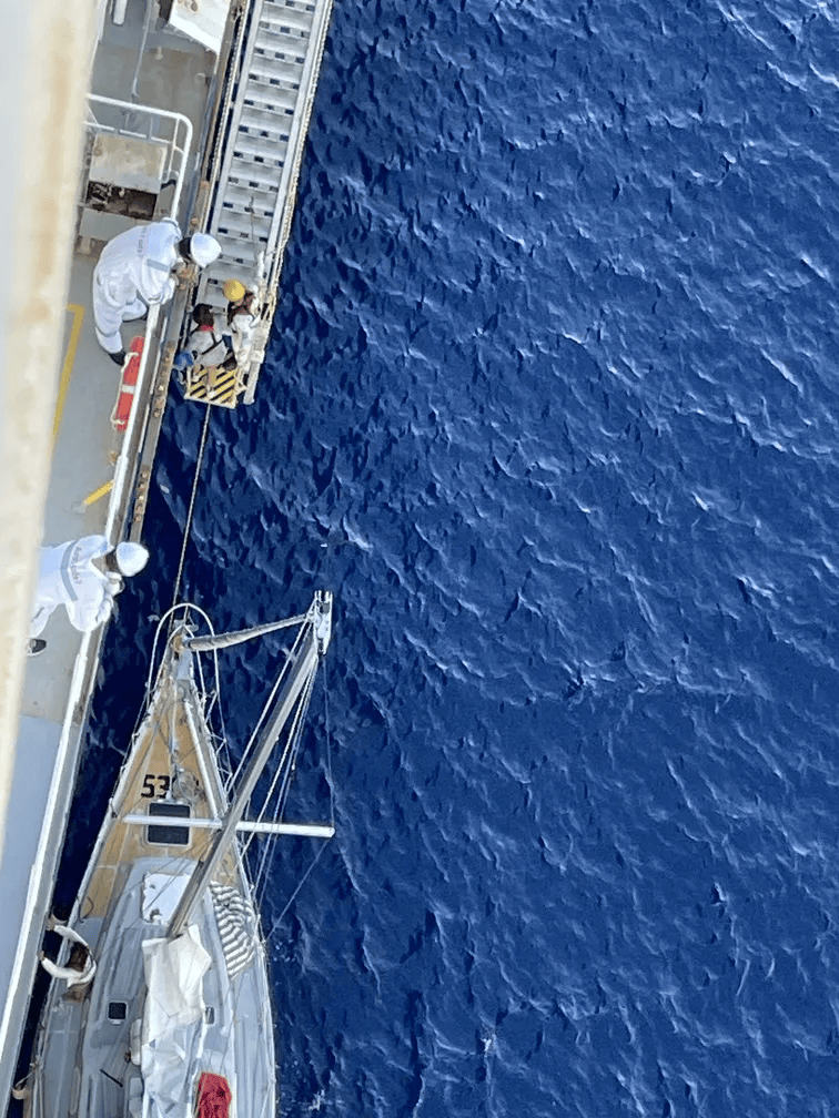 当天当地时间1435,“中能青岛”轮通过VHF收到船名为“Curious Roo”帆船遇险求救信号,该帆船位于“中能青岛”轮船尾约25海里处。接到信号后,“中能青岛”轮第一时间请示岸基管理团队,在取得同意后立即进入紧急状态。在岸基指导下,船舶迅速展开营救风险评估与救援行动准备,同时按流程通报租船人、船东,以及巴布亚新几内亚和澳大利亚海上搜救中心,并与遇险船舶保持密切联系,实时掌握船舶动态与船员状况。