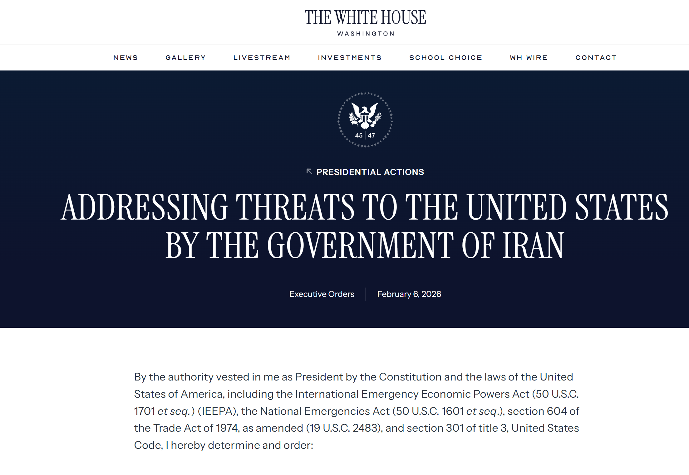 当地时间2月6日,美国白宫公布总统行政令称,总统特朗普已签署一项针对伊朗的最新行政命令,授权美国政府对与伊朗直接或间接发生“商品或服务”交易的国家,其输美商品可能加征额外25%的从价关税。该行政令自2026年2月7日00:01(美国东部时间)起生效。