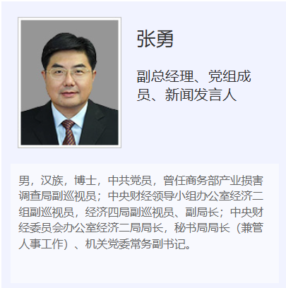 从公开履历摘要看,张勇职业生涯较长时间在国家经贸治理与宏观政策研究体系内展开,曾任商务部产业损害调查局相关职务,并在中央财经领导小组办公室/中央财经委员会办公室系统内历任多个岗位。 这一履历路径通常意味着其在产业政策协调、贸易政策工具、跨部门综合治理等方面具备较强的实务经验,也更熟悉宏观层面的政策传导逻辑与制度设计框架。