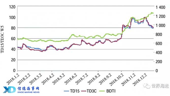 国际金融危机全面爆发距今已10周年,2018年是世界经济格局大发展大变革大调整的一个重要转折点。世界经济延续温和增长,主要经济体增长态势、通胀水平和货币政策分化明显,新兴经济体资本流出加剧,金融市场持续震荡。美国通过“货币政策正常化”“保护主义”“规则高标准化”的政策组合,诱使或迫使全球资本向美国流动,以新规则为基础强化发达经济体“统一战线”,对发展中国家形成“资本流出”和“规则边缘化”的双重压力。石油输出国组织(OPEC)执行限产计划,大规模原油过剩库存销声匿迹;美国退出伊核协议,对伊朗重启制裁,多因素促使油价强劲反弹。年末在市场担心全球经济增长放缓损及石油需求以及供给过剩加剧等因素刺激下油价暴跌。油运市场前三季度运价持续底部运行,四季度出现大力度反弹。
