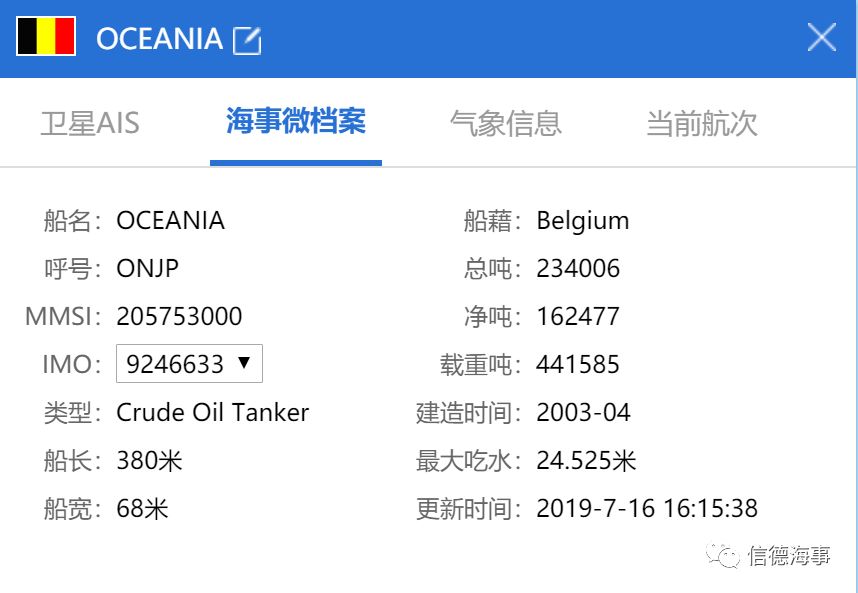 16年的船龄,380米长,68米宽,超44万dwt,这艘船舶装载的货物几乎能够支撑法国和英国一天的消耗。近日这艘超级油轮正在从地中海马耳他驶往马来西亚的Sungai Linggi的路上,预计将于9月末抵达目的地。