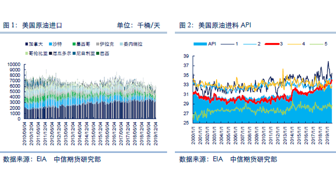 EIA预测美国2020年原油产量有望超过1320万桶/天,同比2019年增加90万桶/天,随着该国管道、出口设施不断完善,出口有望进一步增加,EIA数据显示2019年九月美国原油出口已超过300万桶/天,同比2018年增长70%,有机构预测2020年底美国原油出口有概率达到500万桶/天,那么随着美国轻质原油产量、出口量飙升,其轻质原油的影响增强,全球炼厂进料轻质化趋势延续,燃料油出率继续下降;另一方面,部分国家像美国、印度或从经济性角度或从调节加工原料的API角度增加燃料油进料,提升高硫燃料油需求,随着各地区二级装置投产增多,高硫燃油过剩或不及预期。