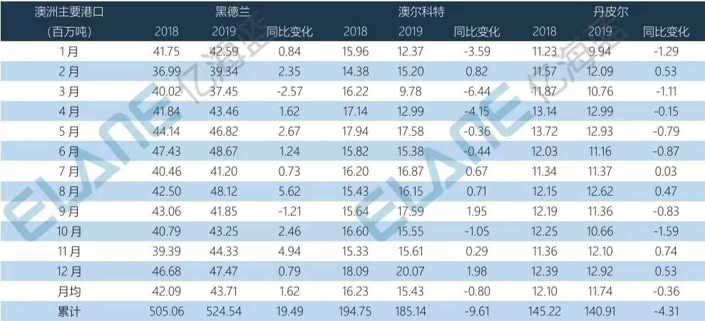 从发货国主要港口来看,澳洲前三大铁矿石发货港分别为,黑德兰、澳尔科特、丹皮尔,2019年发货量分别为5.24亿吨、1.85亿吨、1.40亿吨;巴西前三大铁矿石发货港分别为,伊塔基、图巴朗、塞佩蒂巴,2019年发货量为1.70亿吨、0.61亿吨、0.56亿吨。
