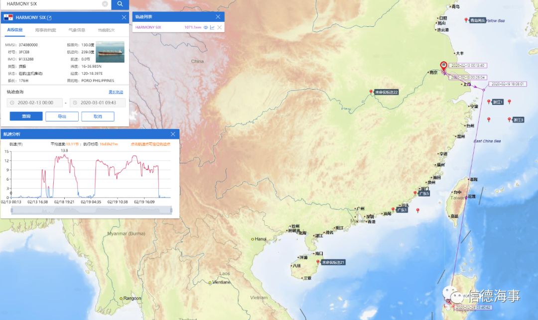 Balilo 表示,为了逃避追踪,该轮离开中国1天后关闭了船舶AIS系统,直到2月23日抵达菲律宾附近海域时才再次打开。