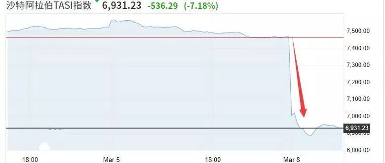 沙特TASI综合指数下挫7%以上,全球最赚钱的公司——沙特阿美开盘即跌停,而科威特股市盘中更是“跌停”触发熔断。
