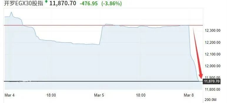 埃及股市而言,开罗EGX30指数开盘即下挫近500点,跌幅超过3.5%;EGX 100指数跌幅也在2%以上。