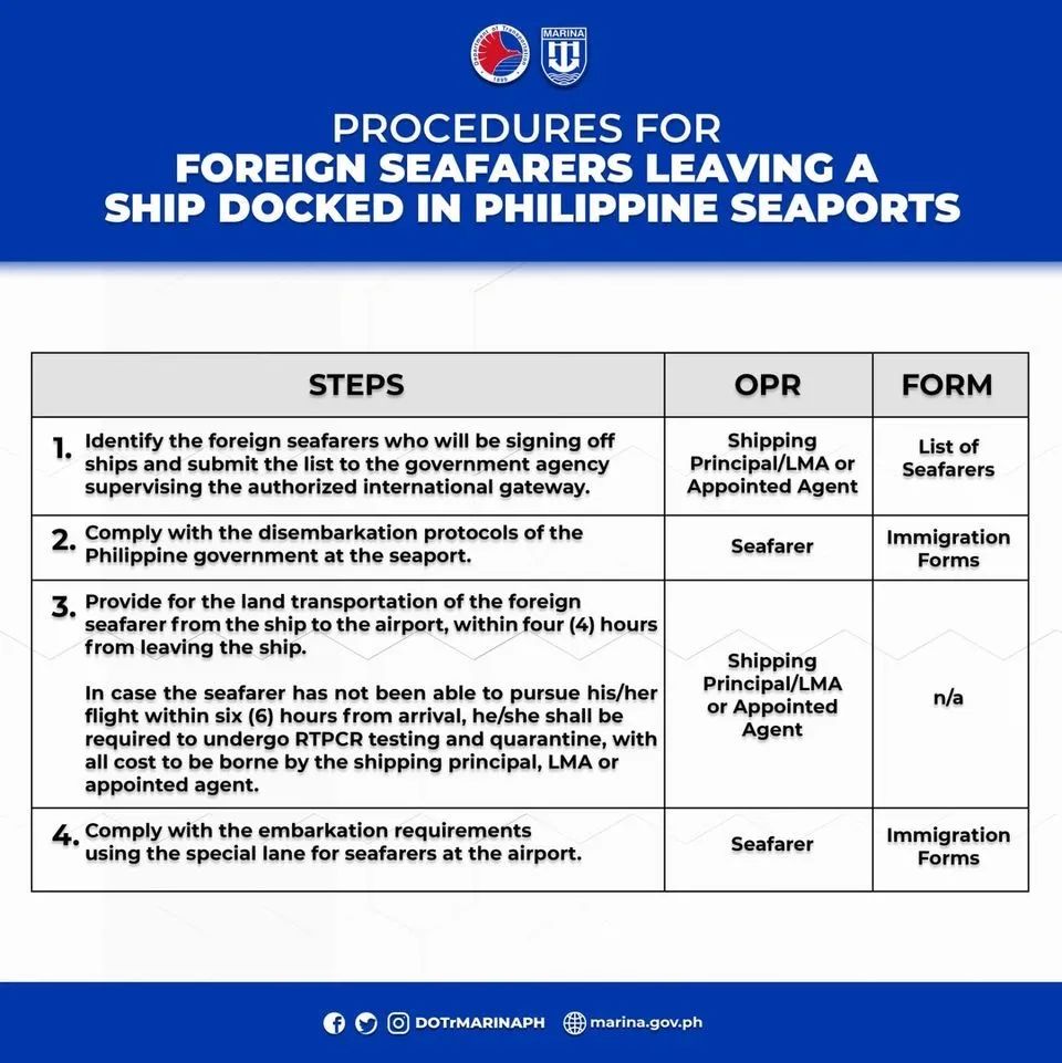 Note: Crew must board the vessel immediately upon arrival in the Philippines and validity of the RT-PCR must not be expired for PPA to allow the entry at seaport.