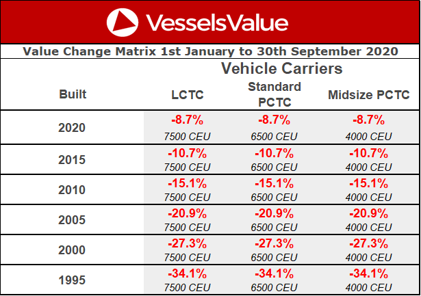 如前所述,新冠疫情造成的需求疲软与船队整体供过于求,导致汽车运输船的资产价值整体下降。