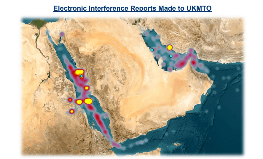 UKMTO表示:“与上一周相比,红海延布、吉达和苏丹港以及富查伊拉周围的电子干扰集中度似乎略有下降,但仍然明显。”