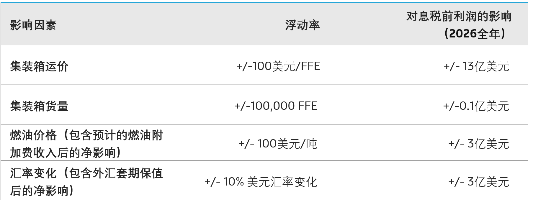A.P. 穆勒 - 马士基2026年的财务表现受到宏观经济、燃油价格、运价等不确定因素的影响。在其他条件相同的情况下,四个核心因素对于利润的预估影响程度如下: