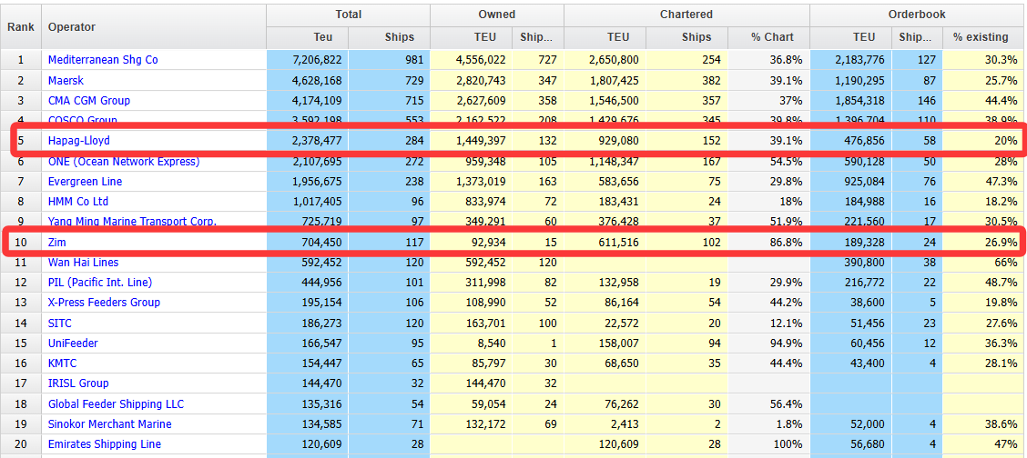 | 两家公司战略画像:赫伯罗特“做大网络”,ZIM价值在国际航线与高租船比例