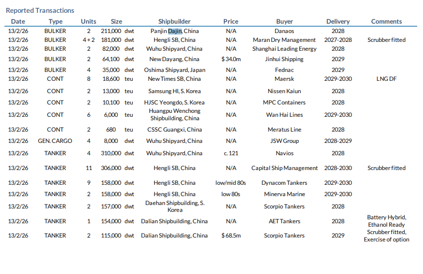 如信德海事网此前在《希腊大船东疯狂盈利,再造6船!》,Danaos 在 2025 财年第四季度业绩披露中确认,公司已下单2 艘 211,000 DWT Newcastlemax,预计2028 年交付。彼时,出于商业磋商考量,船东并未披露承接船厂。随着合作细节逐步明朗,市场普遍认为上述订单已由大金重工承接。