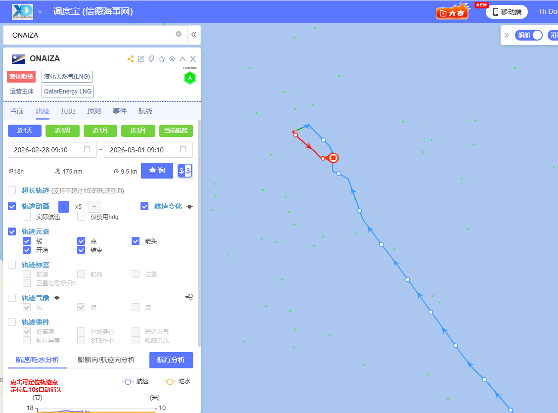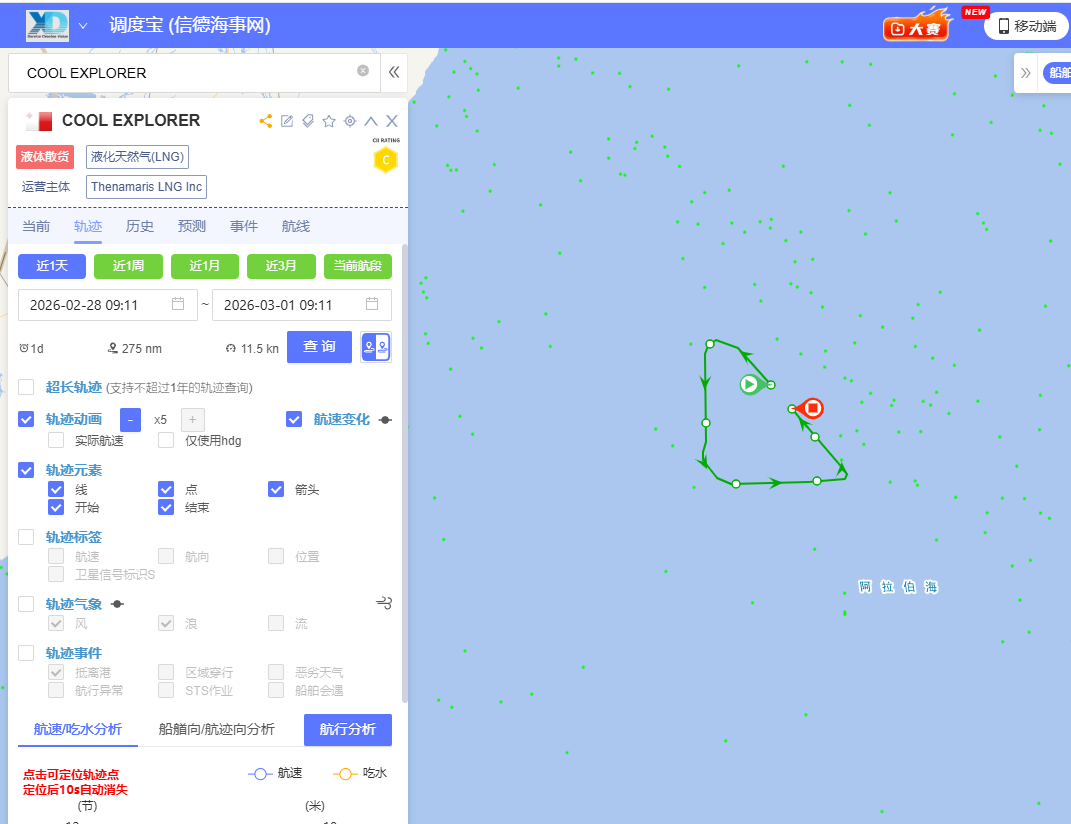 除集装箱船外,LNG运输船的改道行为同样显著。能源航运信息机构披露,至少9艘LNG船已在2月28日当日改变航向,远离霍尔木兹海峡,其中既包括已装货船舶,也包括原计划入湾装货的空船。