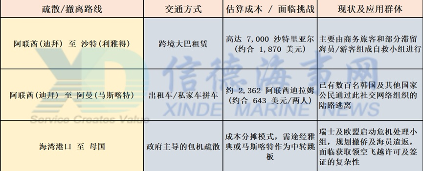 其次,更为绝望的是,常规的撤离通道已被切断。由于卡塔尔、巴林等周边国家的领空大面积关闭,加之防空系统的高度敏感性,数以千计的商业航班被取消。这不仅切断了海员飞回母国的路径,也阻断了接班海员抵达港口的通道,导致大量已完成合同期、身心俱疲的海员被迫在危险环境中继续工作,极大地增加了发生人为安全事故的概率。虽然各国政府和航运公司正在努力维持滞留船舶的基本生存底线,但海员和外籍旅客只能被迫寻找高风险的替代方案。