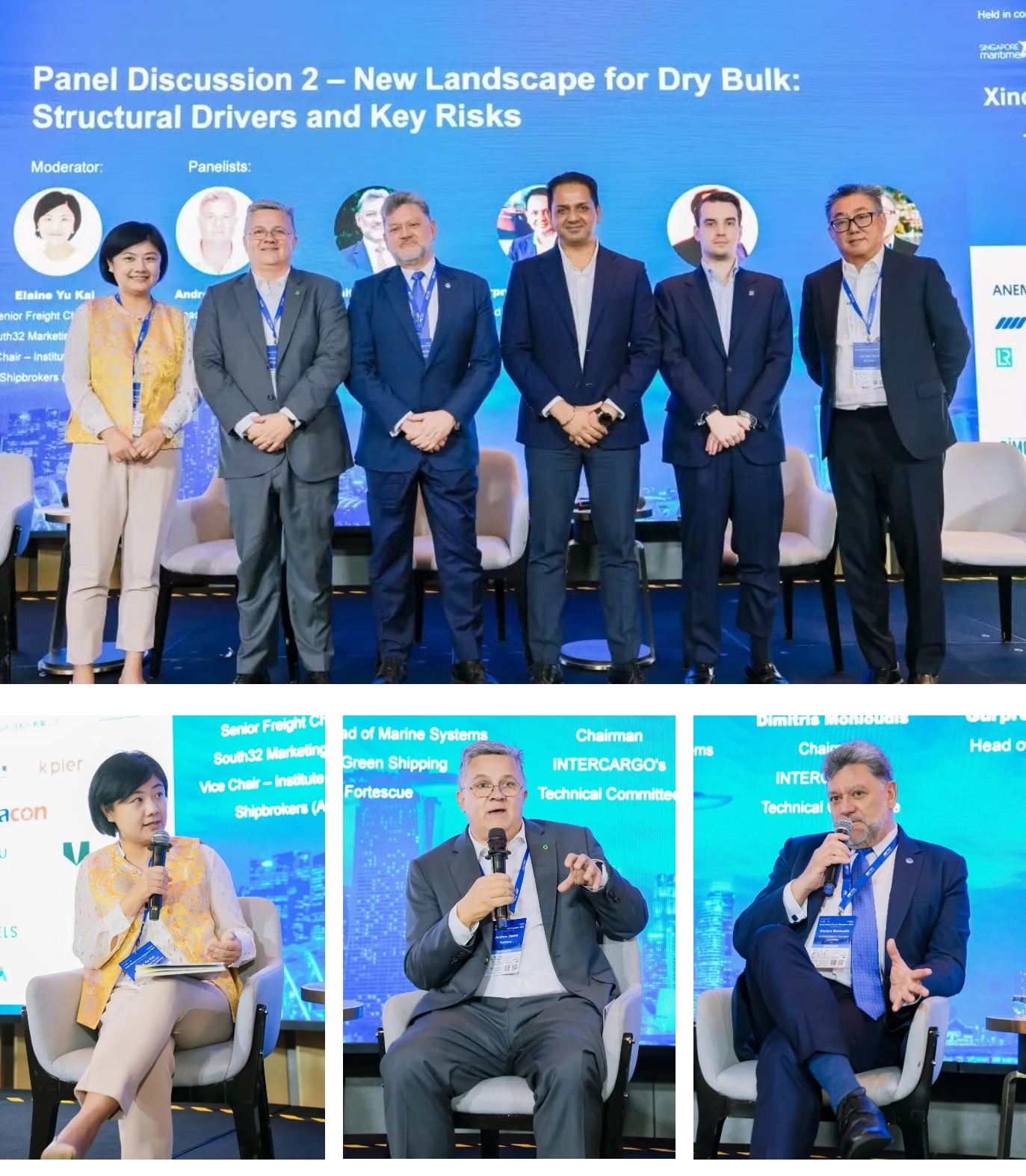该环节由South32 Marketing Pte Ltd资深租船人、英国皇家特许船舶经纪人协会(东盟)副主席Elaine Yu Kai主持,Fortescue绿色航运主管Andrew Hoare、INTERCARGO技术委员会主席Dimitris Monioudis、Berge Bulk船队管理负责人Gurpreet Singh Sandhu、劳氏船级社能源转型咨询全球主管Jack Pringle、G2 Ocean太平洋区董事总经理Lim Sim Keat (SK)参与讨论。嘉宾认为,行业一方面清楚减碳转型不能回头,另一方面又不得不面对燃料路线不清晰、监管预期不稳定、新造船价格高企、替代燃料基础设施不足等现实约束。对多数船东而言,眼下最重要的不是简单押注某一种燃料,而是在延长老船寿命、提升能效、谨慎更新船队和保留未来燃料转换选项之间寻找平衡,同时在不确定中尽量避免被下一轮合规成本甩在后面。