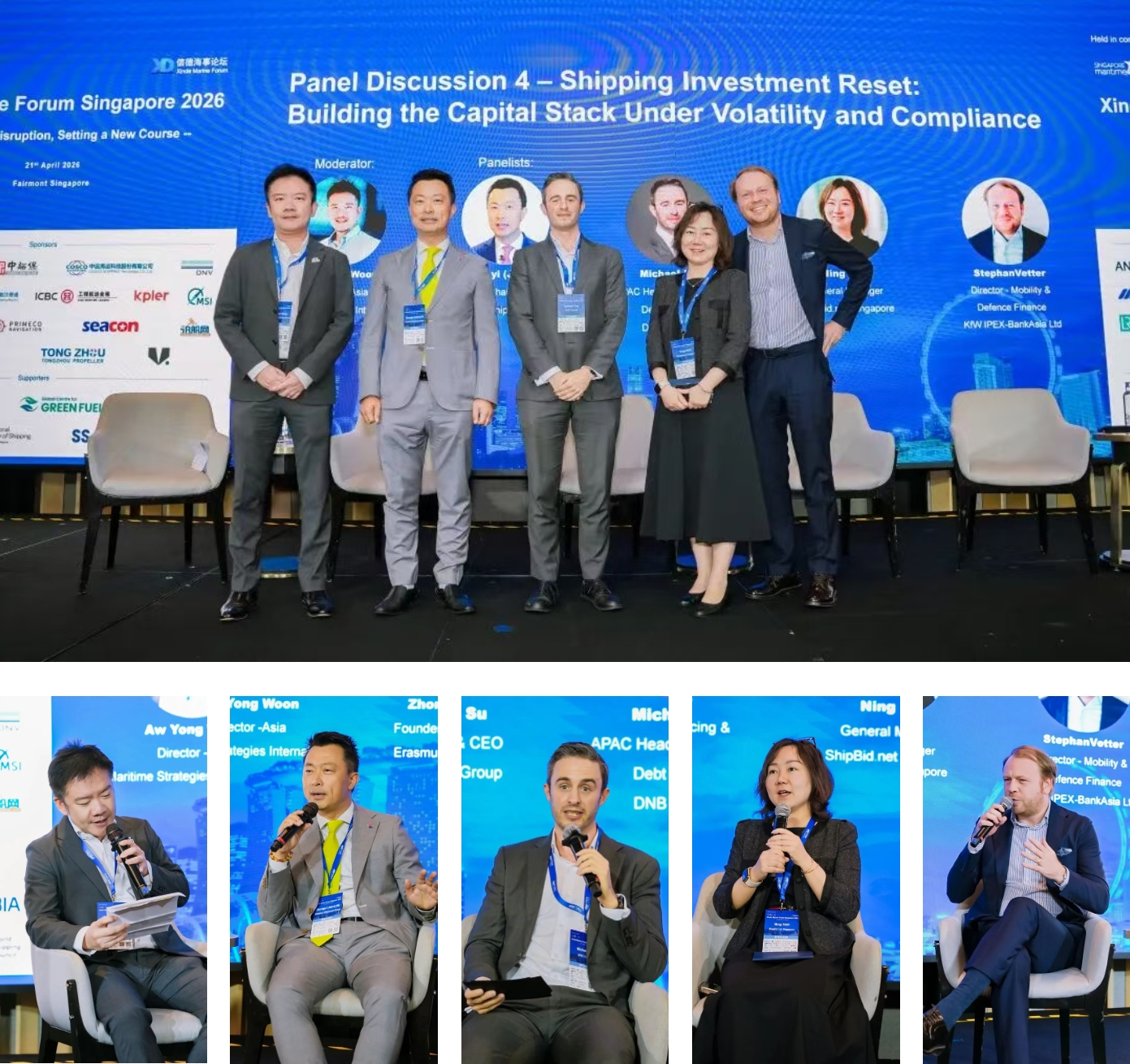 (信德海事网讯)4月21日,由信德海事网主办的第四届信德海事新加坡论坛(Xinde Marine Forum Singapore 2026)在新加坡费尔蒙酒店成功举办。本次论坛以“Navigating Disruption, Setting a New Course(乘风破浪,启航新程)”为主题 ,吸引了来自全球航运产业链的贸易商、船公司、船管公司、船级社、船厂、经纪公司、金融及保险机构等200位多代表齐聚一堂,围绕集装箱航运新平衡、干散货市场新格局、油轮市场风险与策略以及航运投资重塑等热点话题展开深度讨论与智慧碰撞。